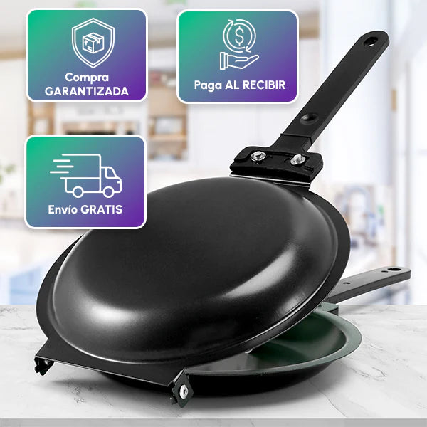 Sarten doble cara 👉 No más accidentes al voltear tus tortillas y panqueques.